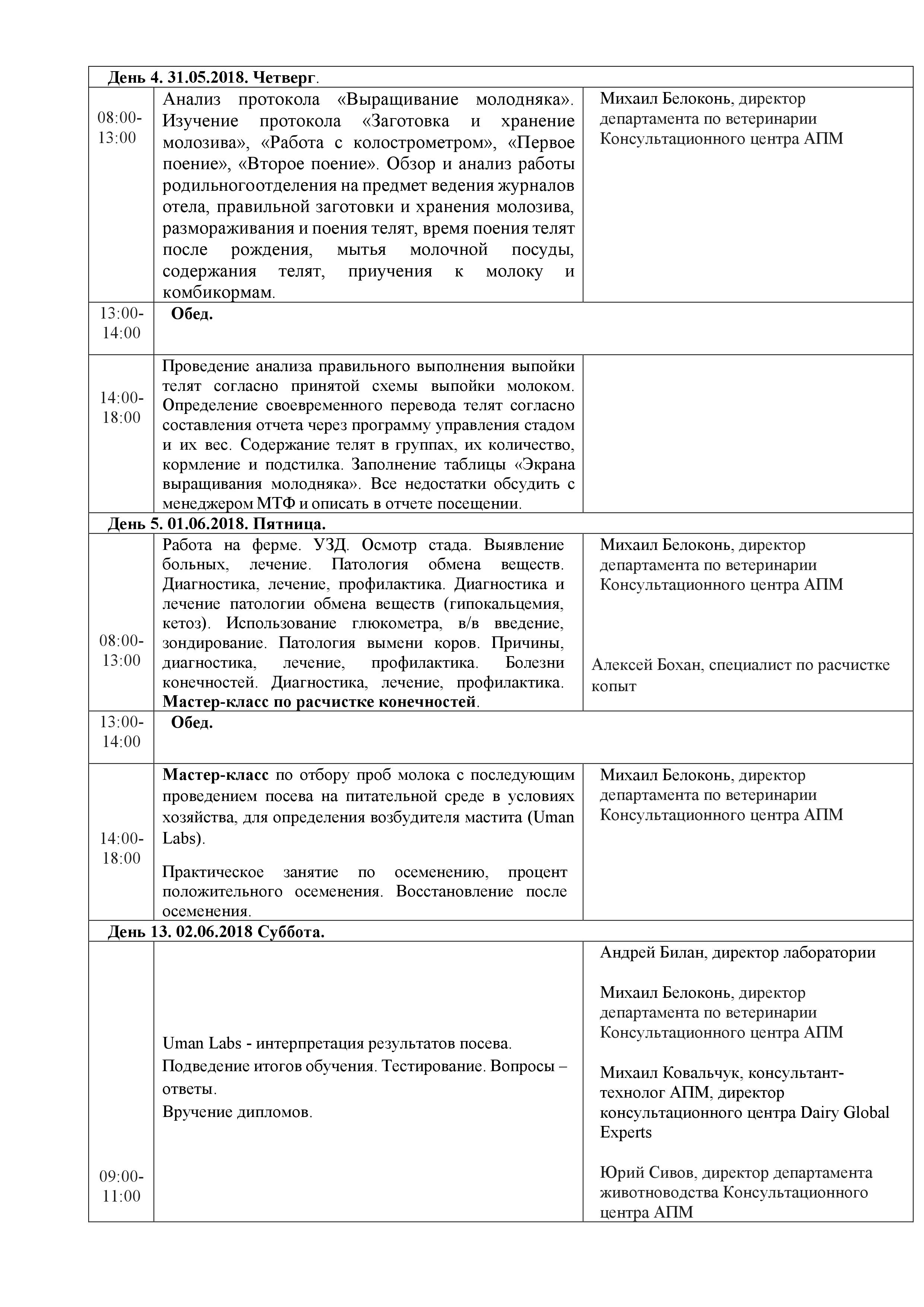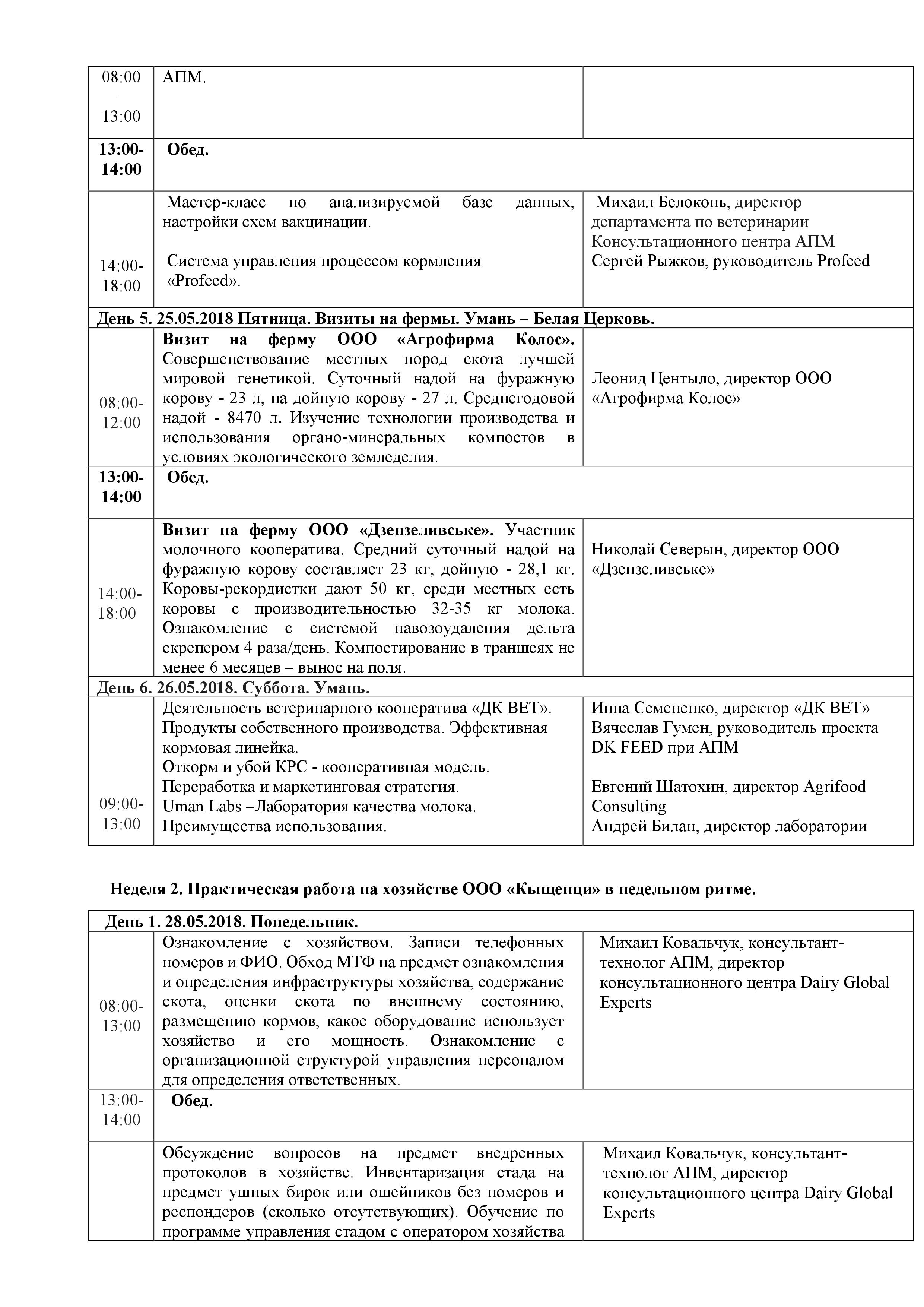 За 2 недели у Вас будет возможность узнать об аспектах ведения молочного бизнеса в Украине на примере Ассоциации производителей молока, познакомится с работой Лаборатории качества молока и Центра ветеринарного обслуживания. Вы получите информацию о структуре молочно-товарной фермы, организации работы на ферме, о технологии осеменения, ультразвуковой диагностике стельности коров, увидите мастер-класс по доению, по расчистке конечностей и по отбору проб молока для определения возбудителя мастита (Uman Labs).